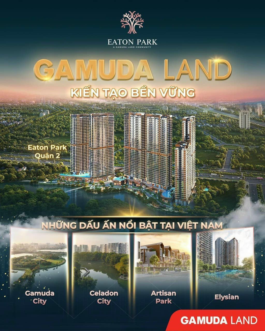 Uy tín của Gamuda Land đảm bảo Eaton Park không chỉ là nơi ở mà còn là khoản đầu tư bền vững.