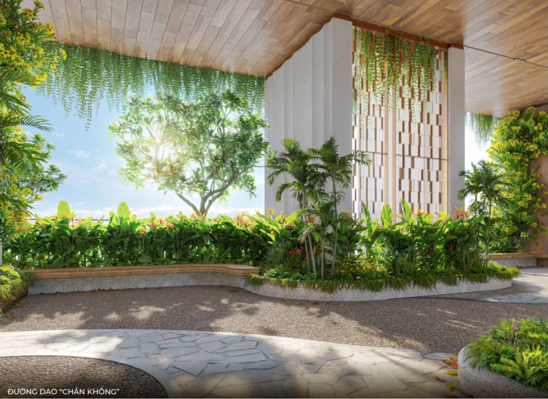 - 56,3% diện tích xanh: Trong 3,73ha, hơn nửa là công viên, suối cảnh quan 300m, vườn thiền, đường dạo bộ, và vườn hoa nhiệt đới. Bạn có thể chạy bộ sáng sớm, thiền bên suối, hoặc tổ chức tiệc BBQ giữa không gian xanh mát.