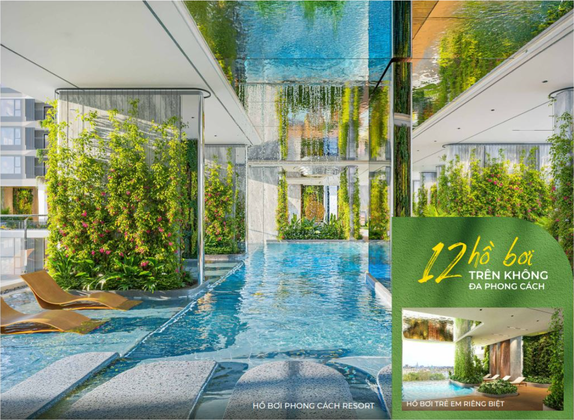 - Thiết kế đón thiên nhiên: 8 tòa tháp 40 tầng với mặt tiền kính cường lực và ban công rộng, đón gió và ánh sáng tự nhiên, view công viên nội khu hoặc hồ bơi sky pool.
